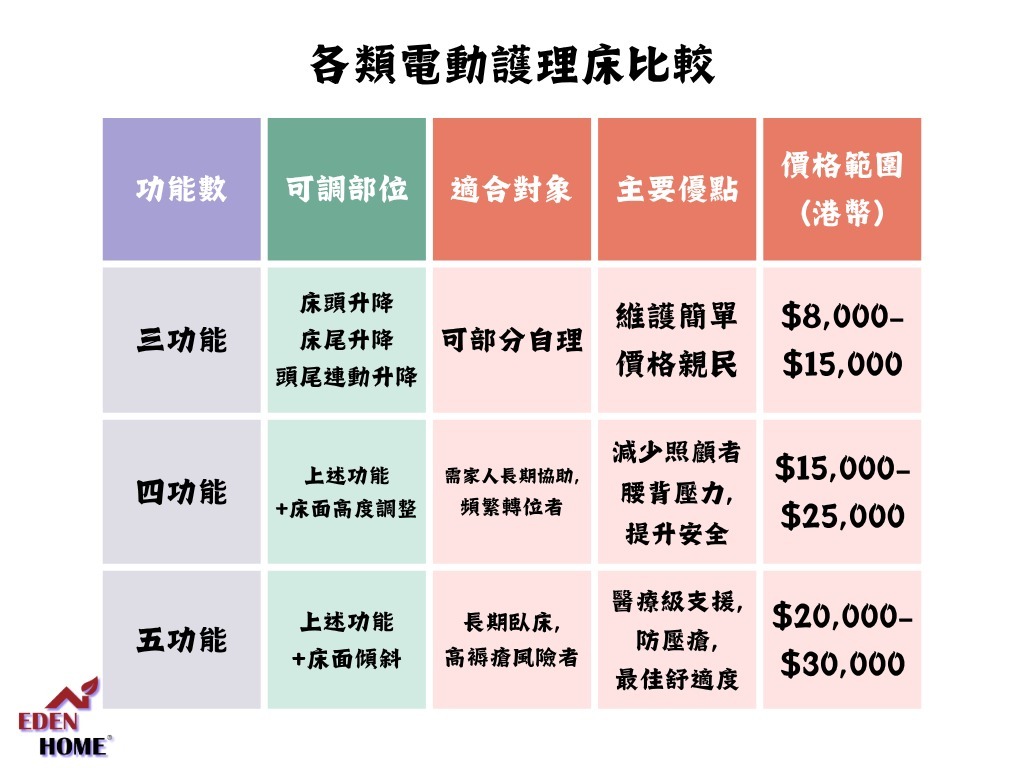 實際價格會因品牌、材質、配件(如護欄、床墊)及售後服務而有所差異。建議在選購前比較不同供應商的方案,並了解保養與維修條款,確保護理床符合用家的需要。