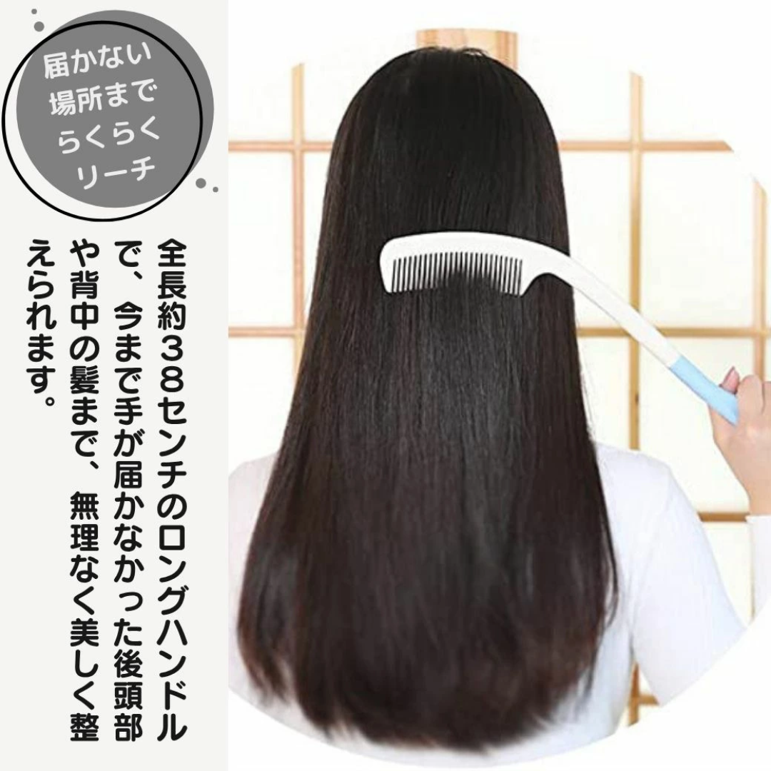 1)38公分加長弧形手柄 輕鬆梳理後腦枕與背部髮絲