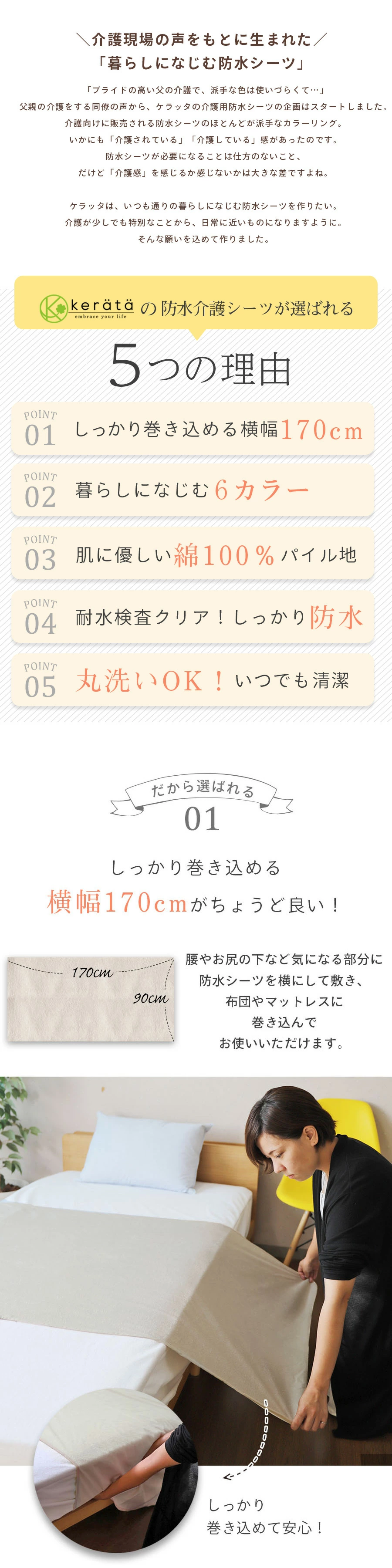 .寬度170cm,有別於一般防水床單可以緊緊包裹在團或床墊防止防水床單滑動在床上滑走
