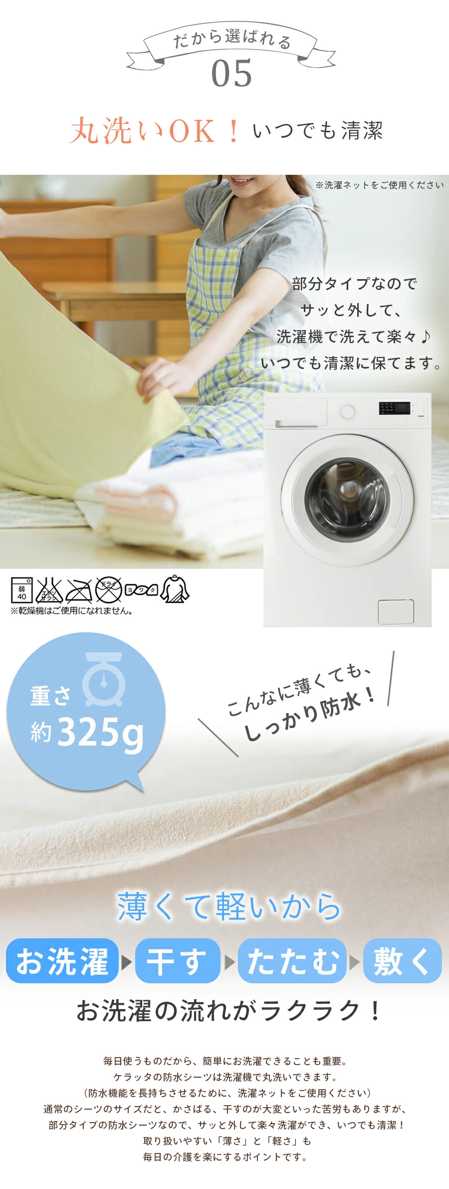 .重量僅325g 非常輕薄而防水讓洗滌過程非常簡單
