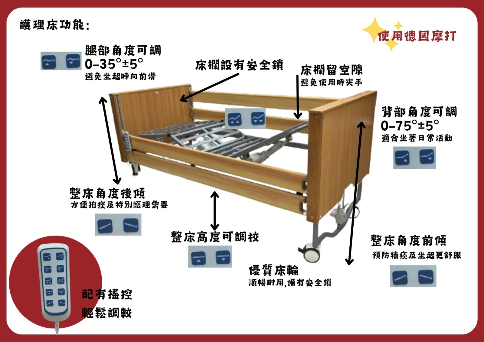 【Cherish】(德國摩打) 五功能居家短板電動護理床 - 尺寸切合香港狹窄家居