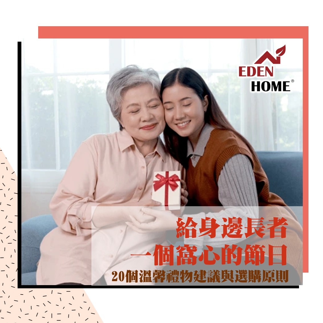 每逢節日是傳遞溫暖與關懷的好機會,為長輩(長者)選擇一份貼心的禮物,不僅能表達心意,更能為他們的生活帶來實質的便利與歡樂。但該如何挑選合適的禮物呢?本文整理了實用的選購原則與20個具體建議,讓你不再為送禮而煩惱!  (一)給長者選禮的四大黃金原則在列出禮物清單前,先掌握這些選購核心原則,確保你的禮物能真正打動長者的心: 1. 實用性優先:長者通常更看重物品的實用價值,避免華而不實的裝飾品2. 安全性考量:注意物品的使用安全性,避免複雜操作或潛在危險3. 易用性關鍵:選擇操作簡單、字體清晰、界面直觀的產品4. 情感連結深:融入個人化元素,讓禮物承載回憶與關懷 【了解產品】 EDEN HOME長者用品專門店  (二) 20個溫暖實用的禮物建議參考上述原則,有以下具體建議,讓你不用為買禮物而煩惱。  一、健康養生類1. 智能健康手錶:選擇字體大、監測心率與睡眠品質的型號,幫助長者隨時掌握健康狀況2. 高品質保暖用品:如保暖鞋、羽絨背心、羊毛襪、電熱毯等,特別適合怕冷的長者於冬季適用3. 運動或按摩器材:簡易健身單車、拉力帶、手握力球,有助建立運動習慣;輕便的頸部或肩部按摩器,緩解日常肌肉疲勞4. 養生食品禮盒:優質蜂蜜、堅果、無糖養生茶等,兼顧健康與美味5. 室內空氣清淨機:改善居住空氣質素,尤其適合有過敏或呼吸問題的長者  二、生活便利類1. 智能藥盒:具提醒功能,幫助長者規律服藥2. 放大鏡工具組:帶燈放大鏡、大字體閱讀器、放大鏡指甲夾等,方便閱讀與日常使用3. 易握廚具:專為長者設計的省力開罐器、防滑餐具等4. 大字手機/電話:大字按鈕的手機或家居電話,方便長者操作5. 感應夜燈:自動感應亮起,預防夜間起身時跌倒  三、休閒娛樂類1. 課程報名:如繪畫、書法或園藝課程,鼓勵長者發展興趣2. 懷舊音樂播放平台:訂閱音樂平台,預載他們年輕時代的經典歌曲,引發美好回憶3. 健智遊戲:每天動動腦筋,訓練腦力又不會太困難4. 電子書閱讀器:可調整字體大小,輕鬆閱讀不傷眼5. 輕便園藝工具:讓喜歡種植的長輩能更省力地照顧植物 【了解更多健智產品】 MEMORY MARY 玩物健智  四、情感連結類1. 數碼相框:預先載入家庭照片與影片,隨時輪播溫馨回憶2. 書信與家庭相簿:親筆寫下感謝與祝福,搭配整理好的家庭照片3. 客製化日曆:每個月放上不同的家庭合照,讓一整年充滿溫馨4. 親手製作的手工禮物:如編織圍巾、小食等,心意無價5. 「實質陪伴」:多花時間在長者身上,陪伴散步、飲茶茶或郊遊,是最窩心,遠勝一切禮物 溫馨提示:每個長輩的喜好與需求不同,建議根據對方的具體情況調整禮物選擇喔! 【了解更多上述產品】 EDEN HOME長者用品專門店  (三)送禮小貼士:讓心意更加分請記住!-          親自送贈:如果可能,親自將禮物送給長者,並耐心說明使用方法-          包裝考量:避免過度複雜的包裝,方便長者開啟-          價格適中:過於貴重的禮物可能讓長者感到壓力,適度即可-          了解喜好:平時多留意長者生活中真正需要什麼,了解他們的喜好,更能送到心坎裡  (四)結語為長輩選擇節日禮物,最重要的不是價格高低,而是那份「為你著想」的心意。一份貼心的禮物,能讓長者感受到被關心、被理解,這才是節日送禮最珍貴的意義。這個聖誕節,用一份精心挑選的禮物,溫暖長者的心吧!願每個家庭都充滿愛與歡笑。EDEN HOME長者用品專門店 從日本、歐美引進大量優質長者生活用品,貼心設計、功能獨特,絕對適合你的長輩。歡迎致電3916 7834 或 whatsapp 6745 5121(📲查詢) 與EDEN HOME專業團隊聯絡! 【了解產品】請瀏覽,EDEN HOME長者用品專門店