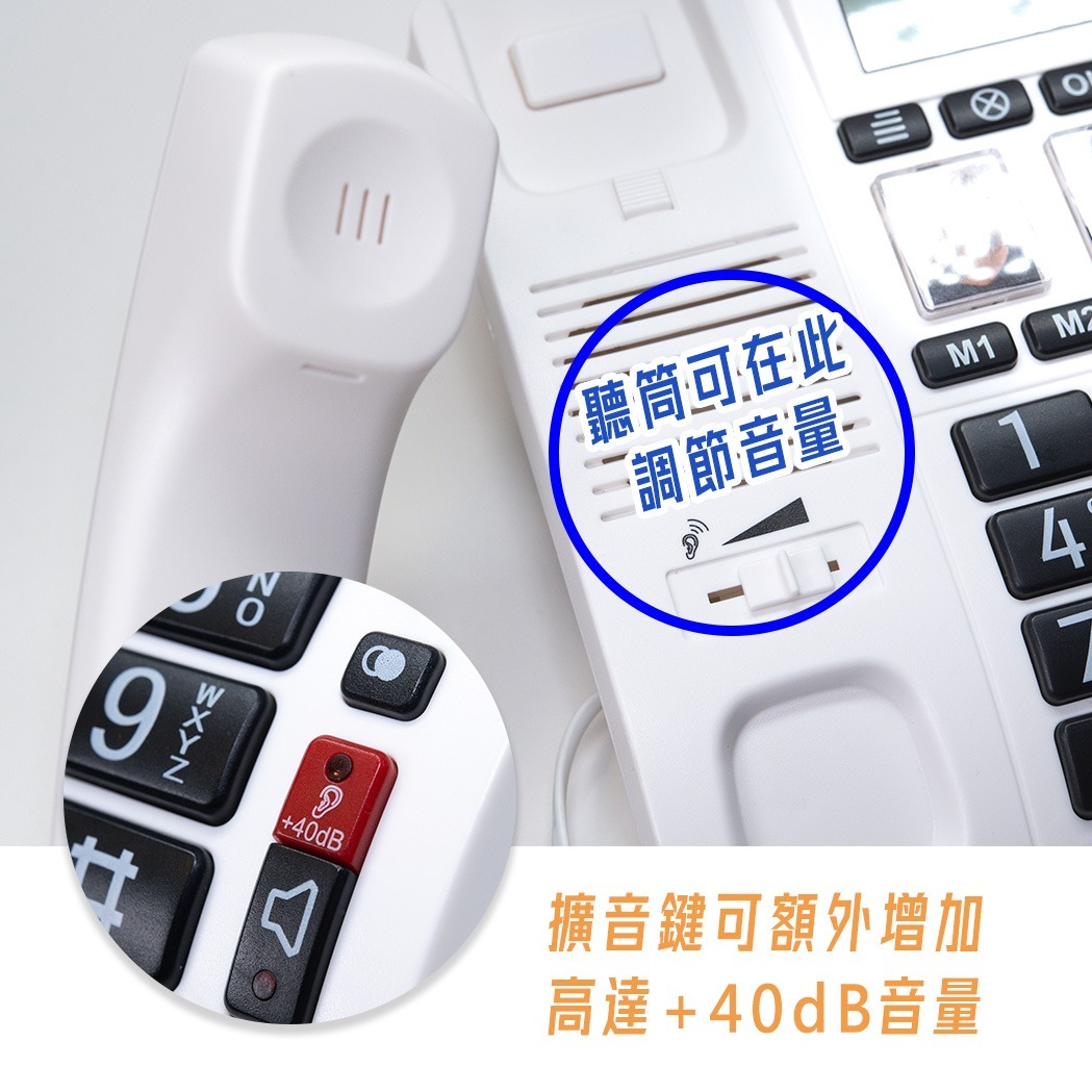.擴音鍵可增加高達+40dB的聽筒音量功能