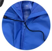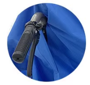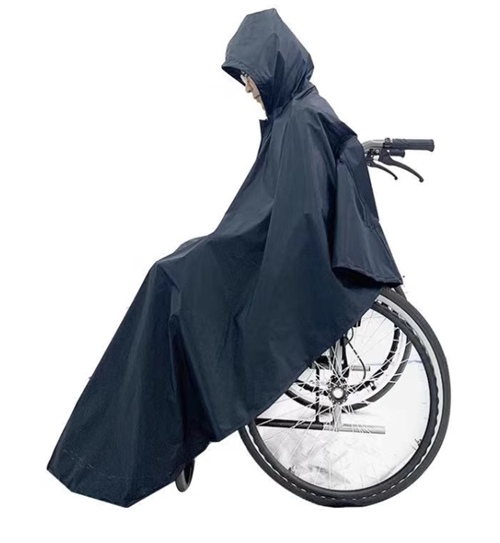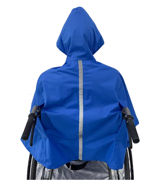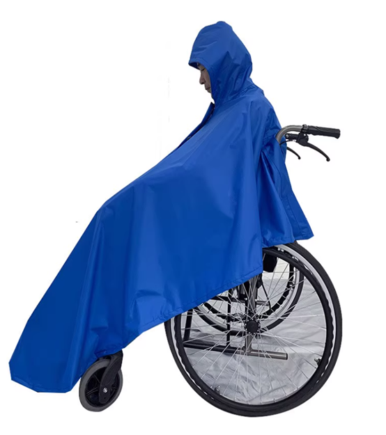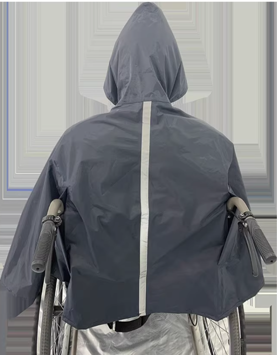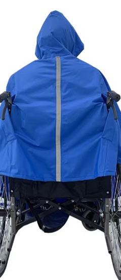 帶按鈕的環帶可以扣住輪椅底部並保護使用者免受雨淋