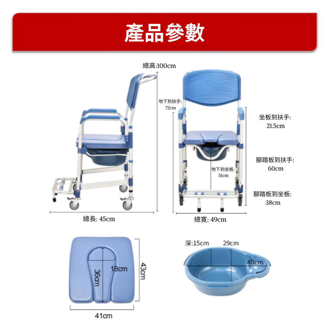 超窄有輪沐浴便椅 (少於50cm寛)