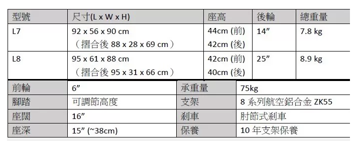 (L7/L8) 超輕輪椅 |支架十年保養)
