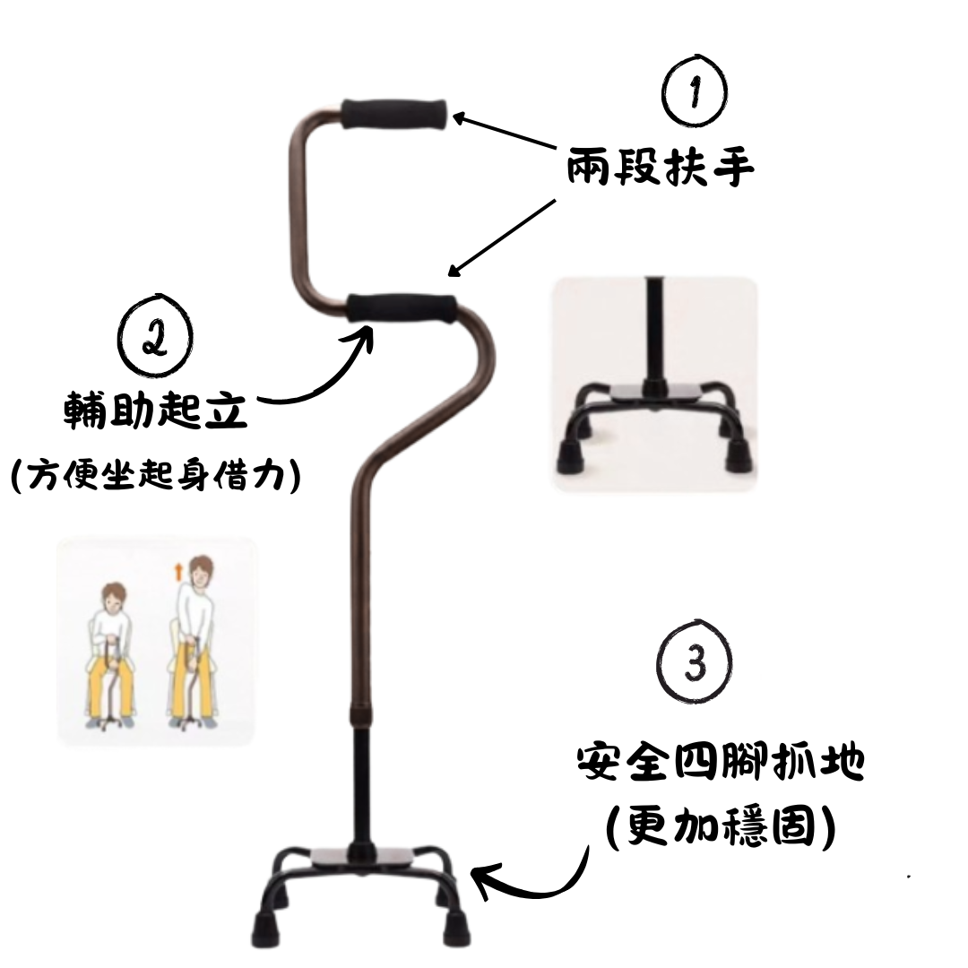 S型輔助起立二段式手杖四腳枴杖(銅色)