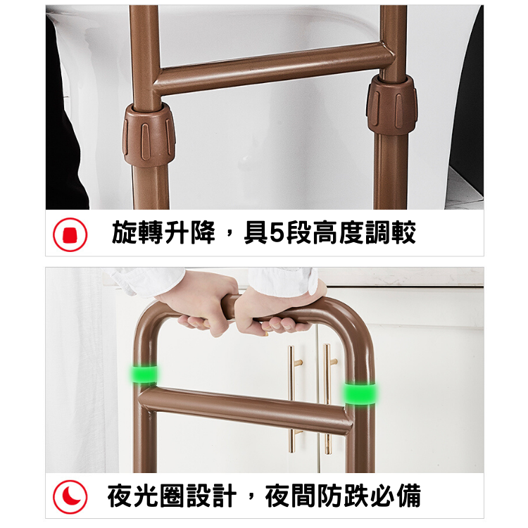 .扶手不需要固定在牆面或地板,可隨意靠床擺放